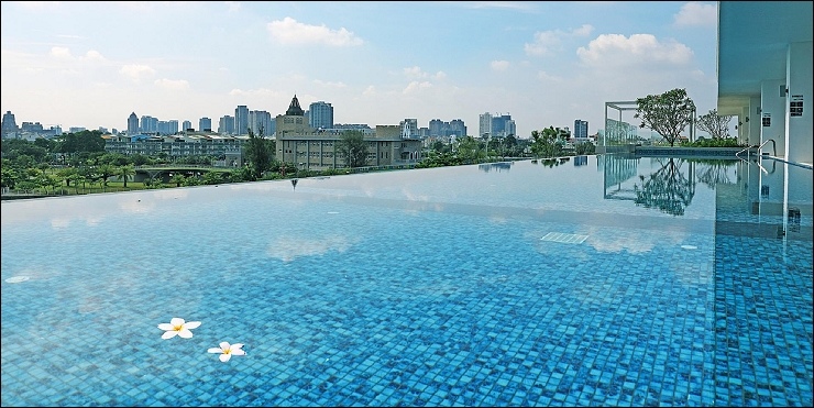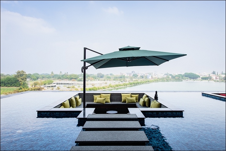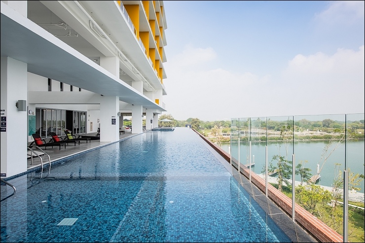 ▲超夢幻的高樓層無邊際泳池,一次眺望水景公園與市區景觀,而室內也有溫水泳池、溫水spa 區、烤箱、蒸氣室及兒童遊戲區。