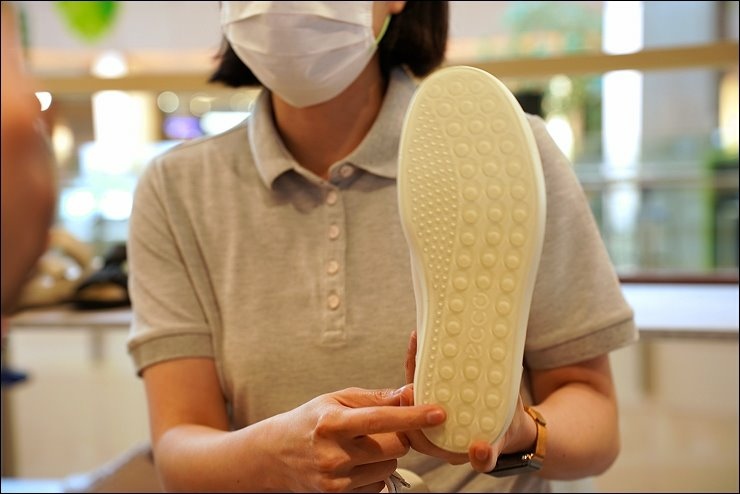 ecco這款便捷瞬穿休閒鞋很簡單,就是妹仔喜歡的小白鞋呀!店員介紹說這雙的鞋底不簡單哦!推薦價6,680元。