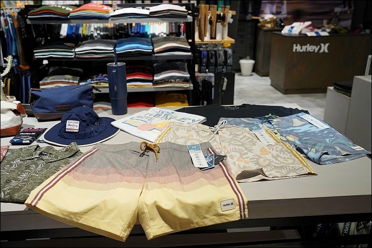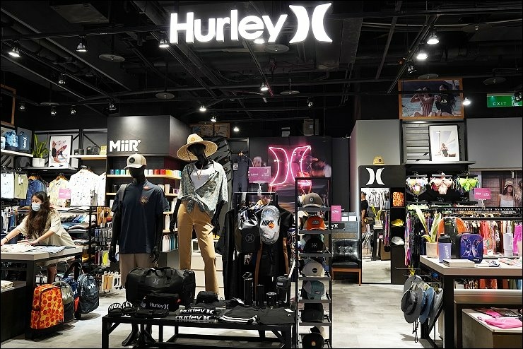 HURLEY(3F),是美國品牌,產品很廣泛,有滑板、滑雪、藝術、音樂等多種領域,很快成為運動類服飾的熱門品牌,2002年Nike公司買下Hurley品牌,Hurley成為Nike旗下的子公司,所以這裡也看得到Nike的一些商品。