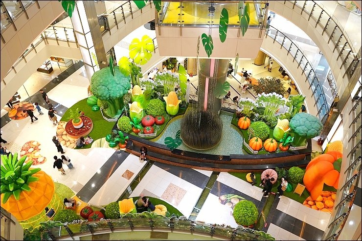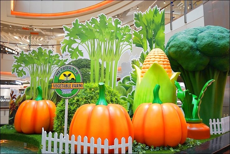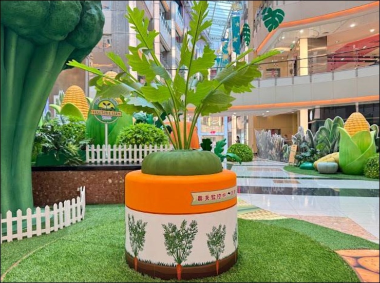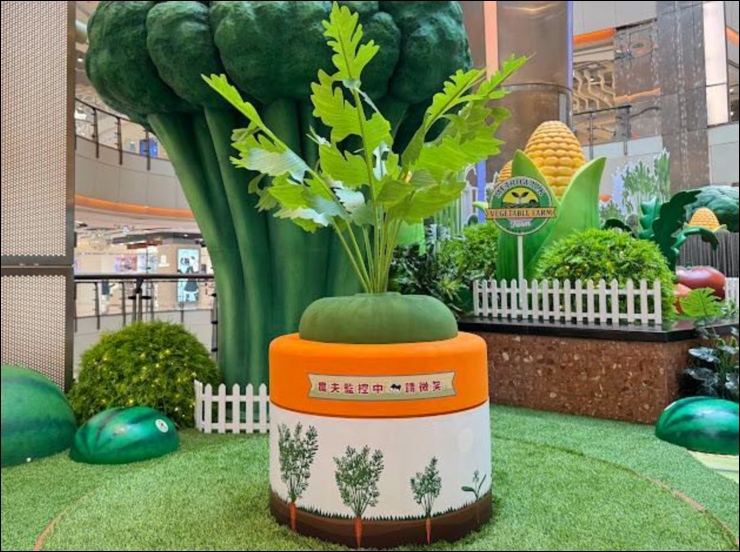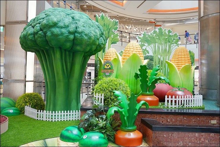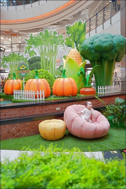 把蔬果農場搬進來!大型的日常看到吃的到的蔬果,南瓜、玉米、蕃茄、花椰菜、綠色蔬菜、紅蘿蔔、白蘿蔔等等,整片綠意好消暑,夏天吹冷氣還能感受綠野仙境的愜意!
