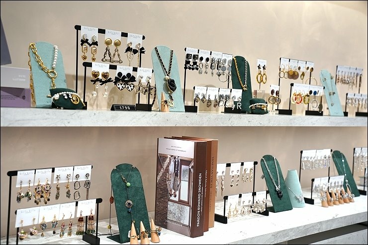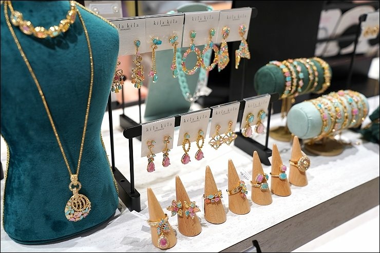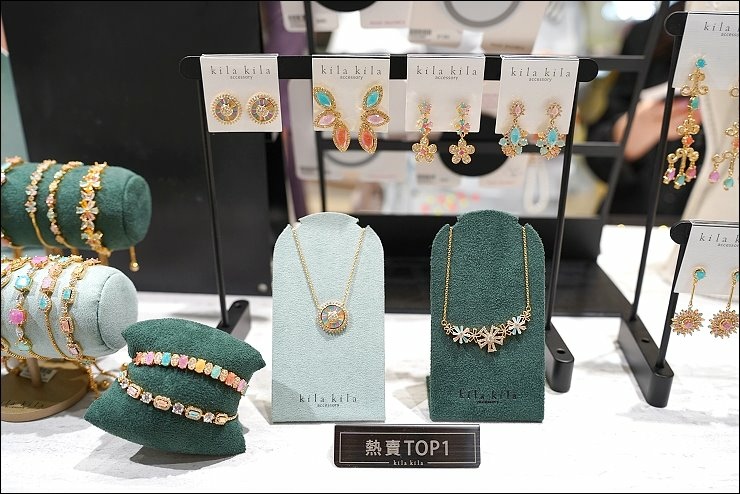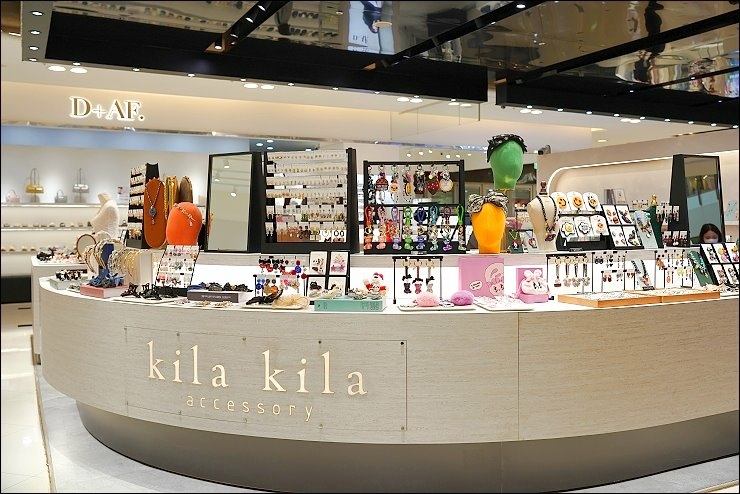 一樓的kila kila,全新打造圓弧形的櫃體很大器,kila kila提供最近流行的飾品及時尚配件,項鍊、手環、戒指、耳環、髮飾等等,商品款飾種類多樣,有手工製作、馬卡龍色列很女孩、還有櫻花粉嫩系列都很吸睛,女孩們,快靠櫃來挑挑喜歡的款式吧!