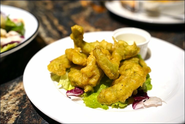 香酥蘿㔜鮮魚佐綠芥茉醬,這道吃起來不油膩,有點像鹹酥魚,單吃就很好吃!
