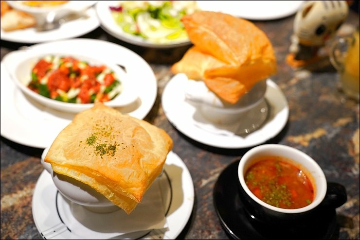 酥皮濃湯、義式蔬菜湯、牛肝菌奶油濃湯加酥皮,熱就是要熱熱的喝,酥皮好吃是好吃,但很佔胃!!!