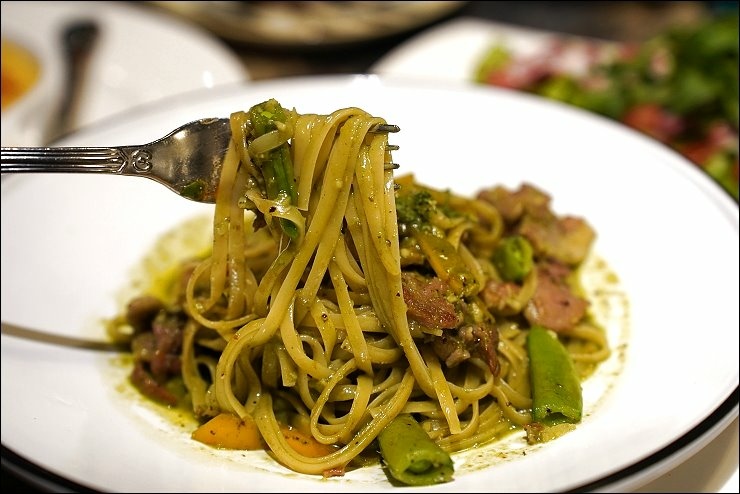 櫻桃鴨腿青醬扁麵,鴨肉不柴,麵條有Q,表現中規中距。