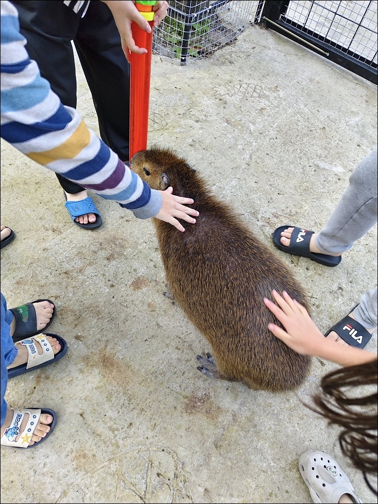 全新開幕萌萌村可愛動物區,近距離接觸超人氣的水豚君、熊貓羊、科爾鴨等,小朋友來到這超開心,沒有過多的遊客,水豚君放出來走動時,很親人,小朋友你一手我一手的去摸牠們,可惜沒有牧草可以餵食。