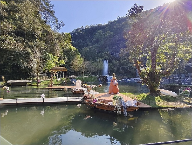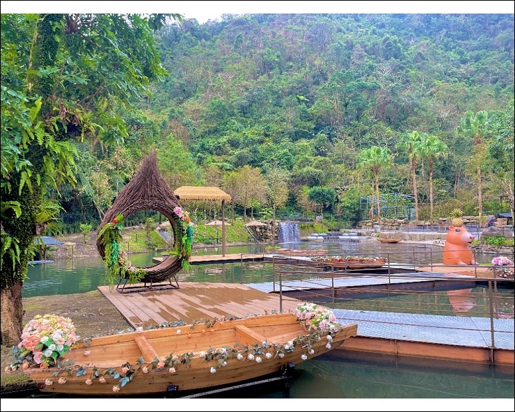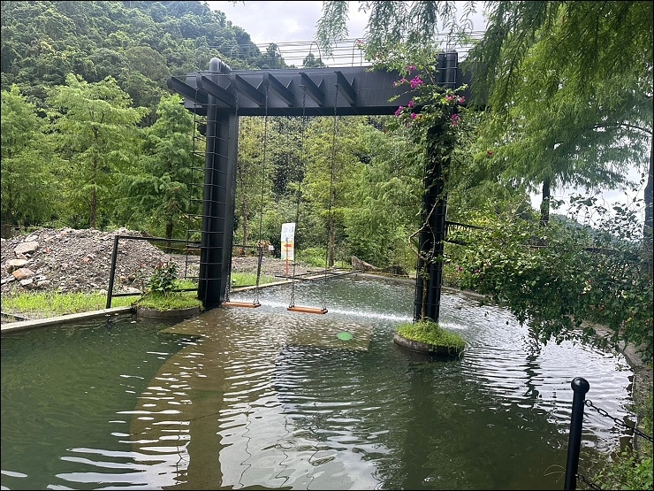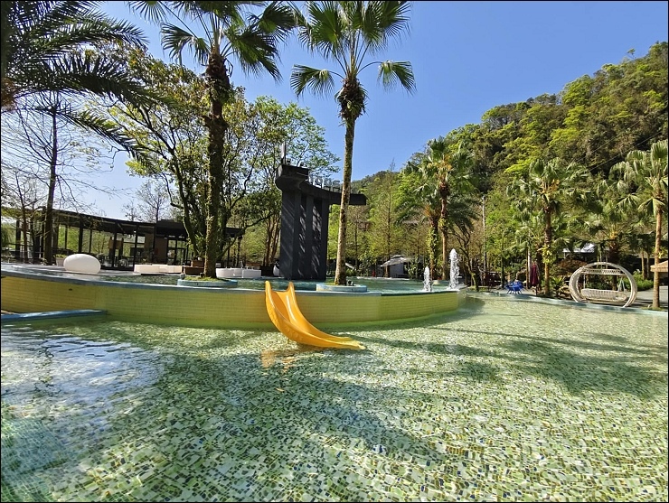 #被山環抱的山泉水大型戲水池,夏天最沁涼消暑。一泊三食全包式,有戲水設施、可愛動物體驗、及戶外遊戲區,還有超多好拍的網美景點。