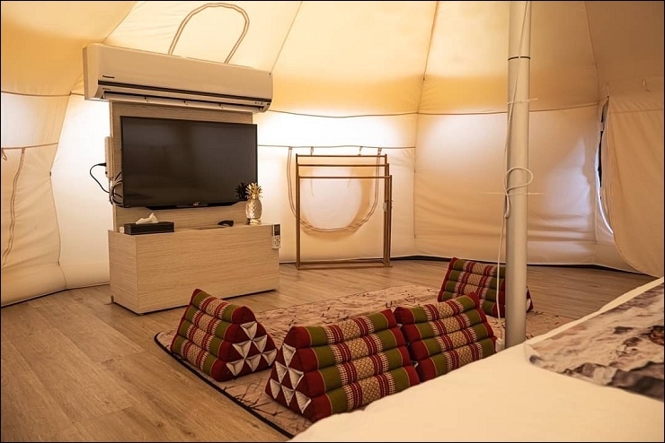 蓮花帳篷搭配木質調客廳