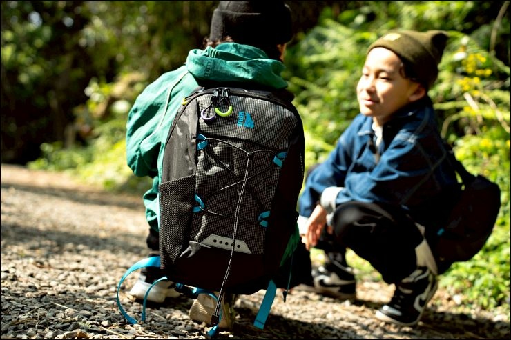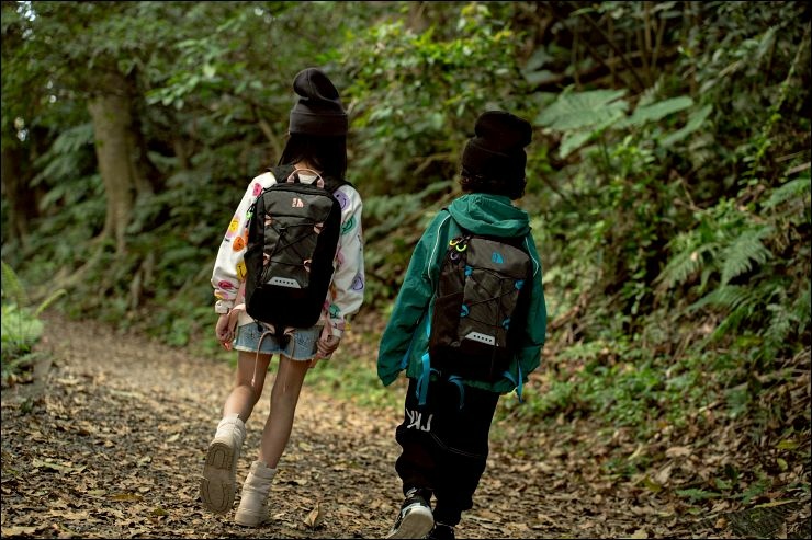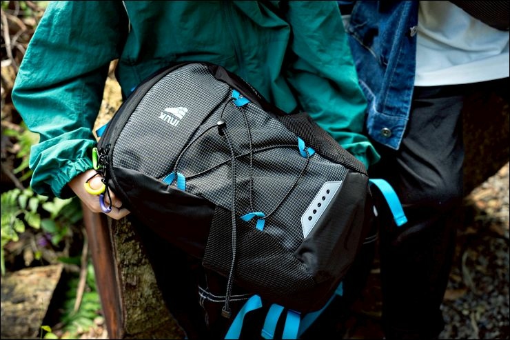 這款是大人跟小孩都可以背的健行背包,非常輕量化,格層也比較簡化,最上面的拉手片帶拉環也可以直接置放髒衣服。