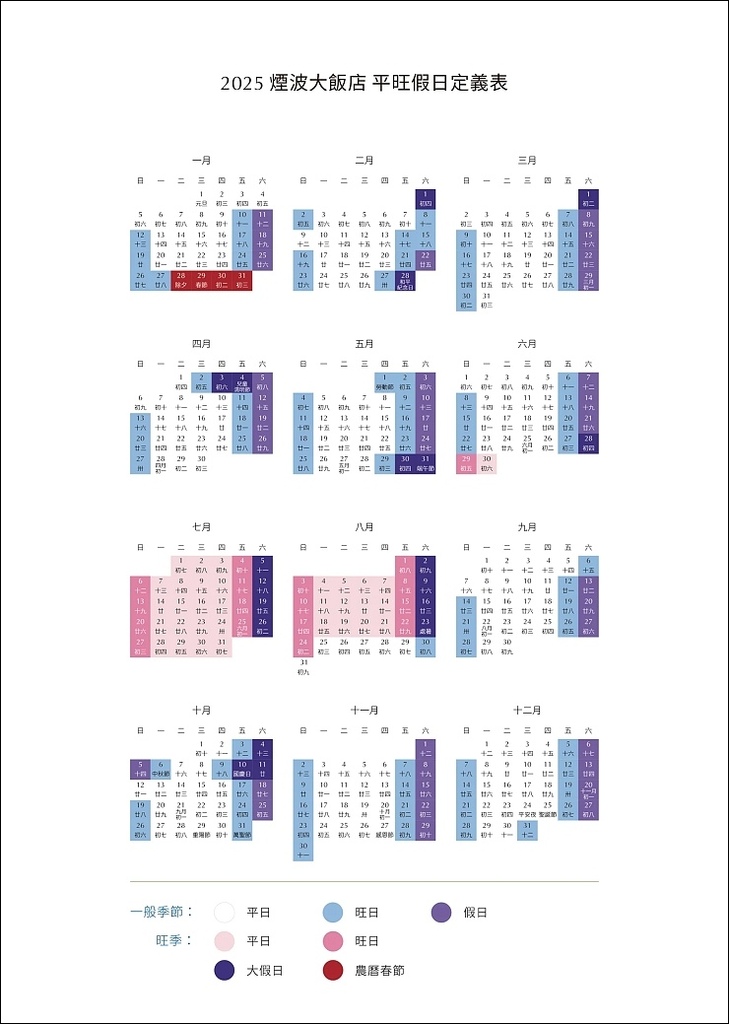 # 平日、旺日、旺季平日、旺季旺日全面不需加價