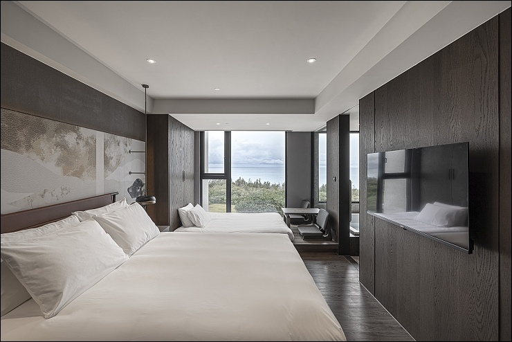 #此為行政雅緻和洋海景家庭房:標準一大床與日式臥榻結合的和洋設計,以沉穩的原色系營造東方禪意的舒適與彈性運用的空間,白天遠眺綿延海景,夜晚欣賞滿天星斗。