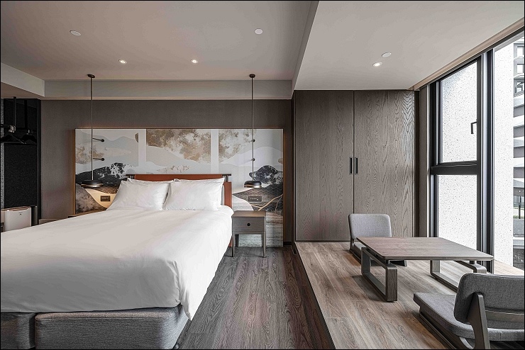 以東方文化為主軸,療癒身、心、靈的「山闊館」,房內設計舒適,標配浴室乾溼分離,還有浴缸,窗戶旁的區域泡杯茶坐在這也很享受!