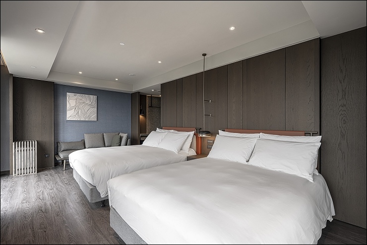 此為雅緻家庭套房:標準兩大床,打造恬淡和諧的慢活空間,展現沉穩內斂的人文氣息,適合家庭出遊,靜享生活的美好。