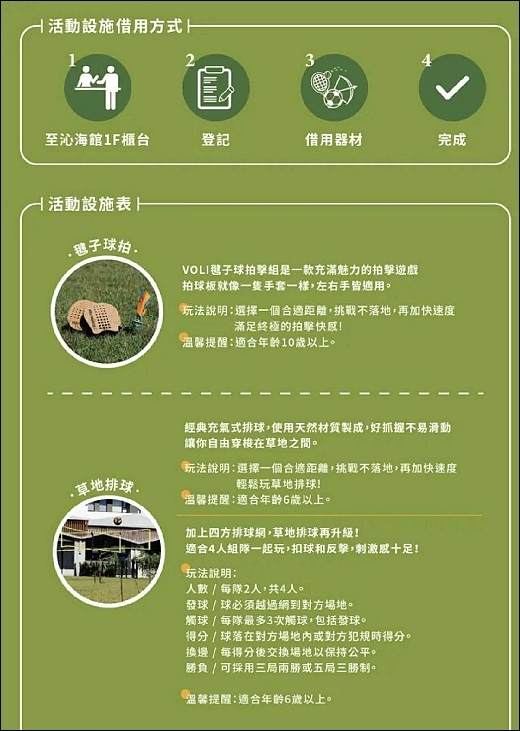 ▶ 免費使用草間帶廣場活動設施(7種活動設施)