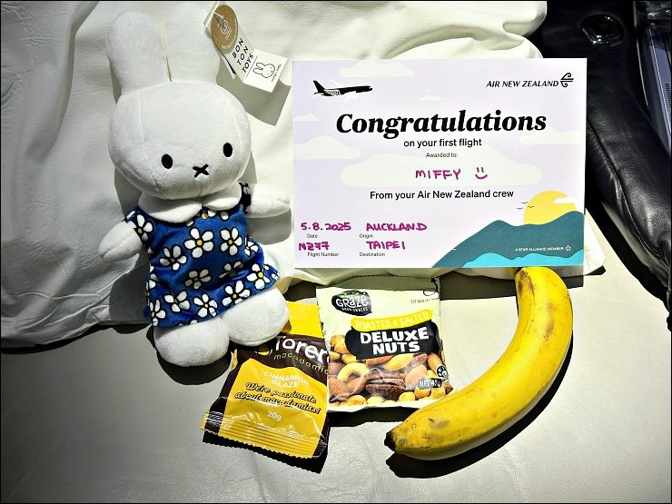 上機前才入手的六折miffy(一隻450),人見人愛,還跟著我一起享受商務艙的尊榮服務。