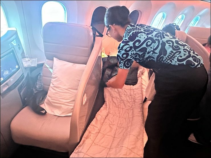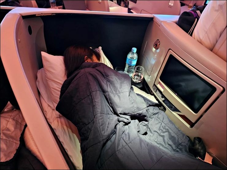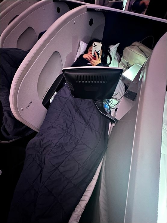 回程我們被升等到商務艙,人品大爆發啊!開心開心。可以一路躺回台灣也太幸福啦~~商務艙讓長途旅行變成一種享受。