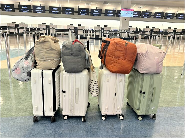 冬天出門要帶的衣服比較多,還要帶很佔位的雪靴跟防水鞋,所以去程就是一人一咖行李再加一個旅行袋,璇他們的旅行袋更是一直長大,越換越大咖:P