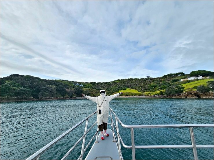 當天海象不佳風浪較大,行前就宣布可以改期或全額退款,我全副武裝上賞鯨船,怕暈船全程待在室外吹風近5個小時,去程堅守在最前方的甲板上(我的同伴早早離我而去),一度鞋子襪子褲子都溼😅