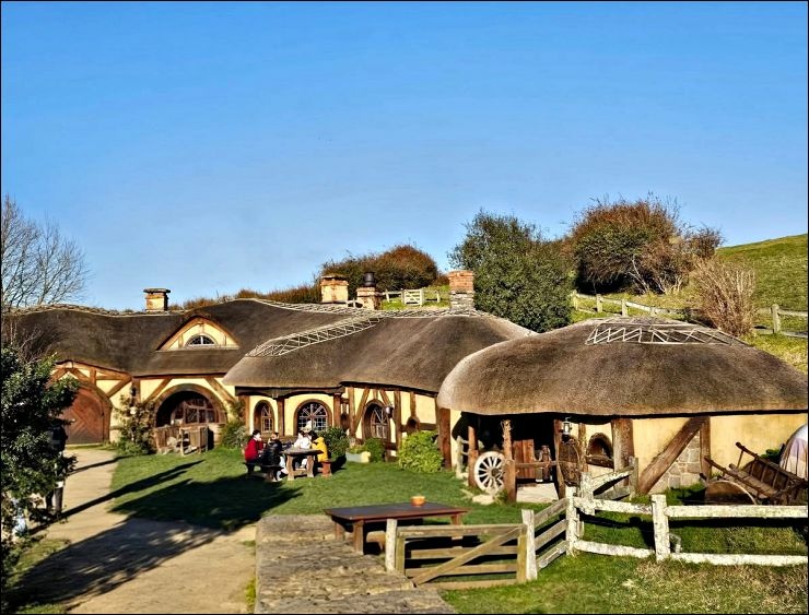 要去哈比村還要換車進去,接駁車就在禮品店旁邊,一個先掏光口袋再放你參觀的意思,哈比村有專人導覽不能脫隊亂走,我們愛拍照一直落在隊伍最後,加上英文不好常常有聽沒有懂,乾脆徹底不聽了🤪