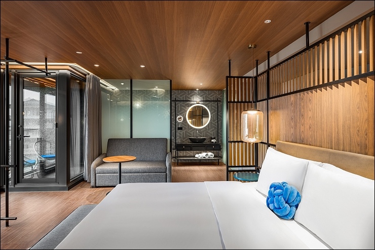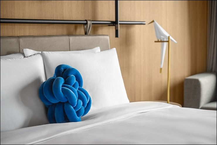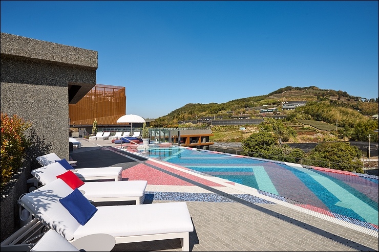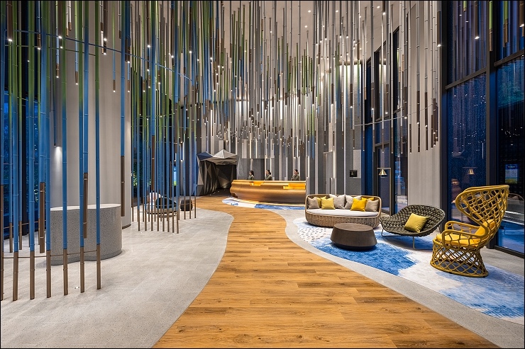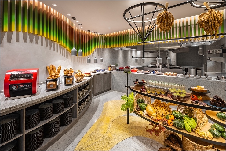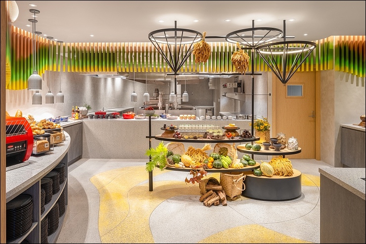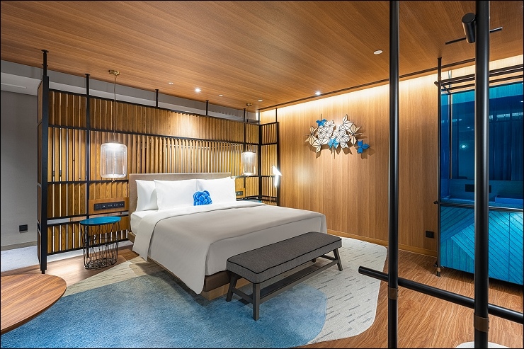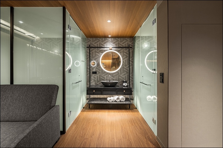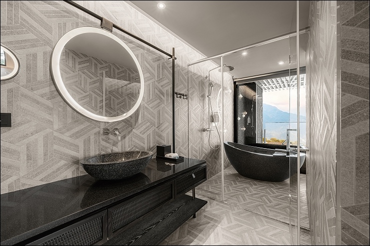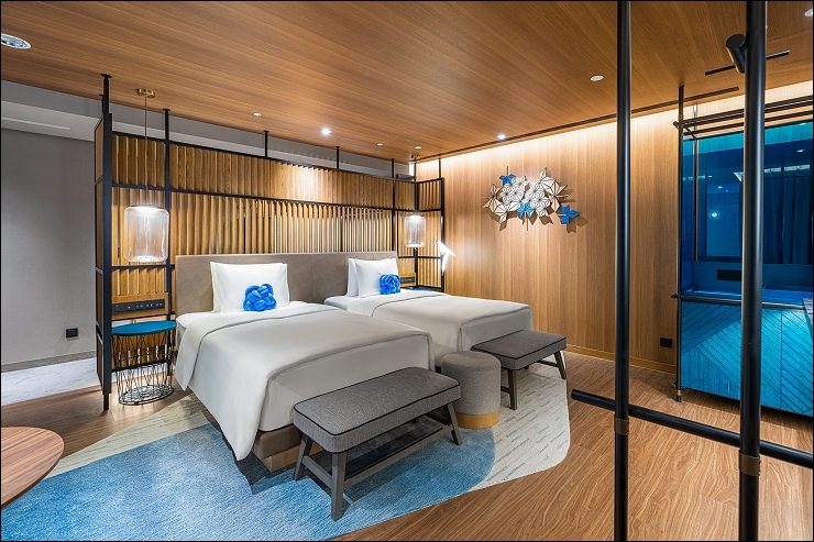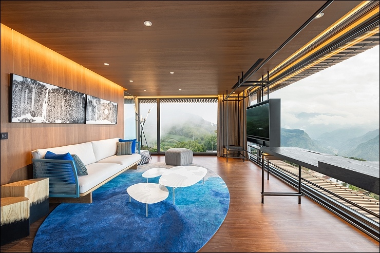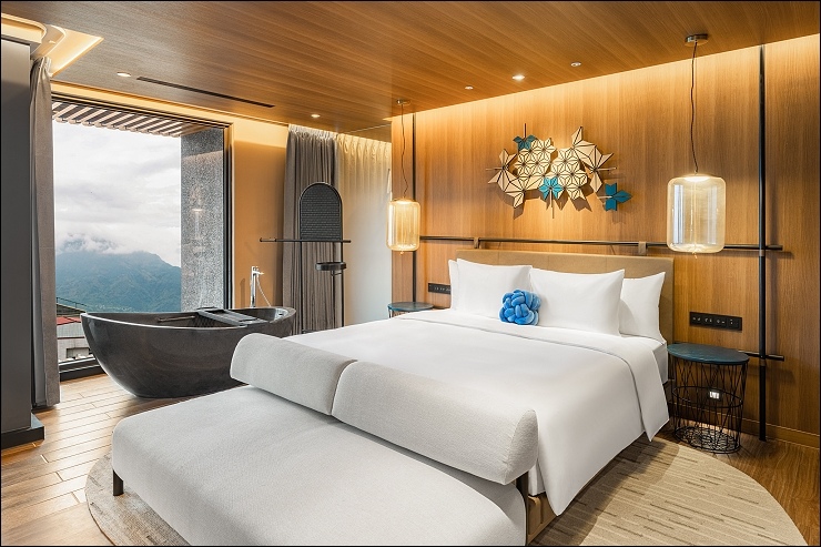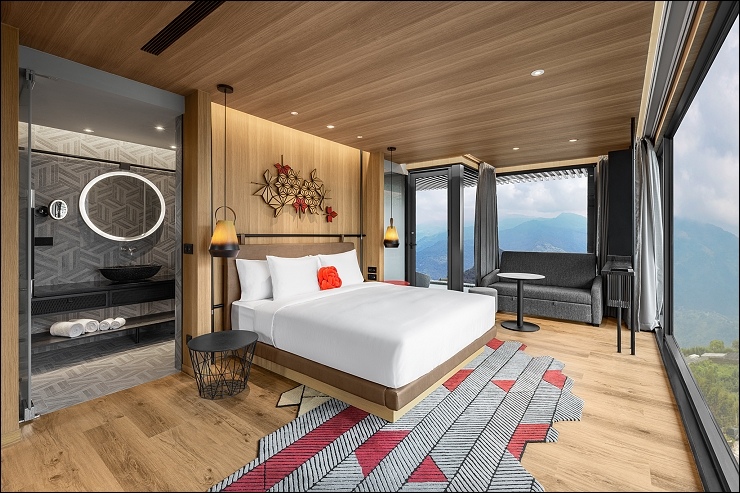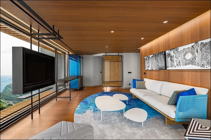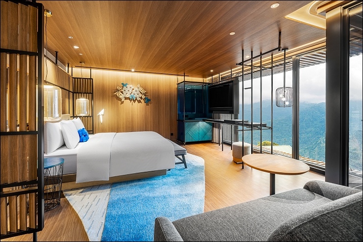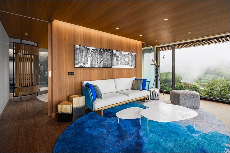 飯店外觀像是融入高海拔山林的綠建築,入口大廳、沈浸式走廊和梯廳融入了原住民、日出、雲海、森林和鐵道意象的藝術設計,國際級飯店的細節質感藝術感十足。