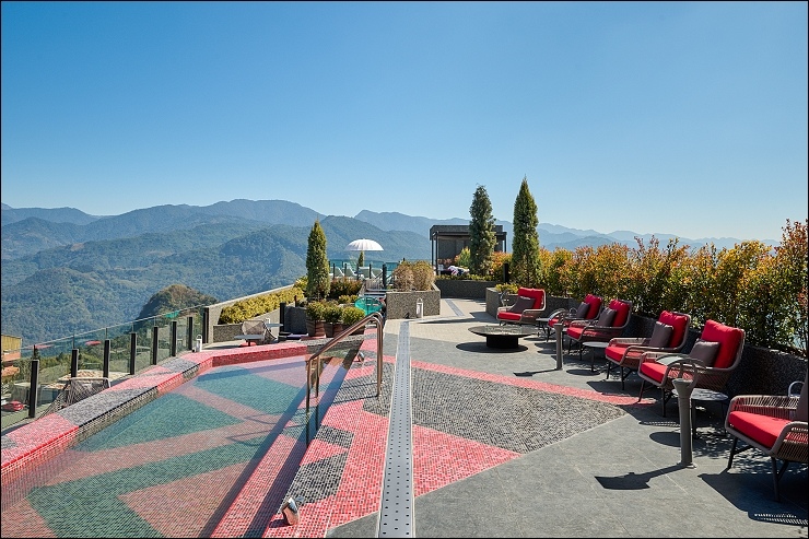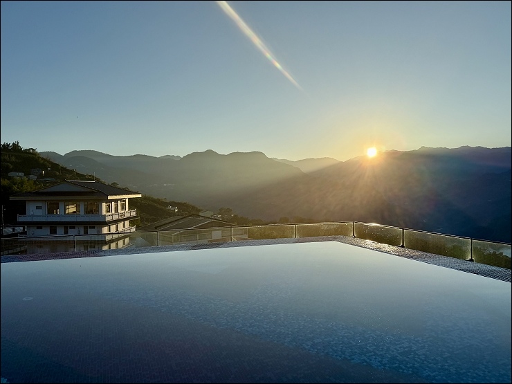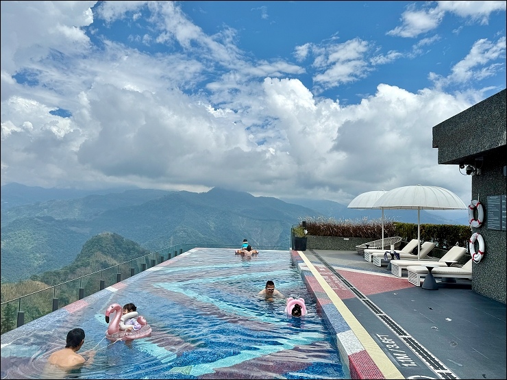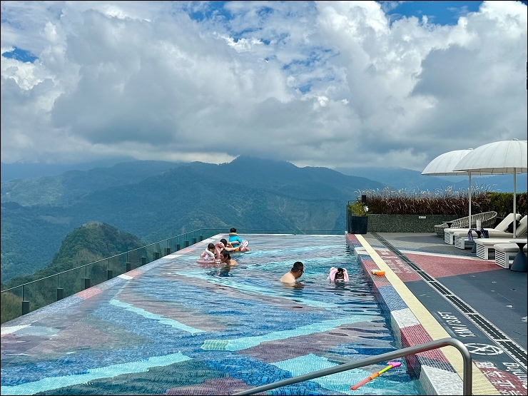 高海拔1280公尺的無邊際恆溫泳池,讓小朋友來高山可以玩水,更過份是還有山巒雲海當背景!