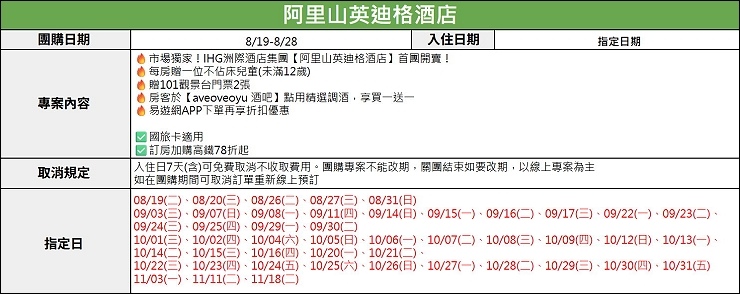 ⭕魔鬼甄團購限定!市場獨家!IHG洲際酒店集團【阿里山英迪格酒店】首團開賣!