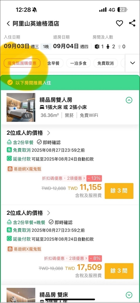 A:有顯示"魔鬼甄團購"標籤,不含早餐的內容點進去會顯示"有送早餐"請放心預訂