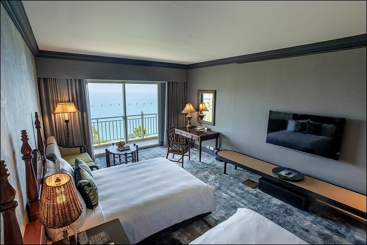 如果是住南翼高樓層的海景房view超讚,真的是不用出房門就能欣賞無敵海景(我的感嘆聲不絕於耳),尤其颱風來臨前夕出大景,真的是美呆(完全不想離開啊),飯店公關說還有超幸運的客人在房間就看到海豚(感覺要非常非常幸運)!