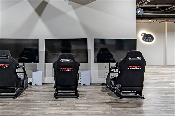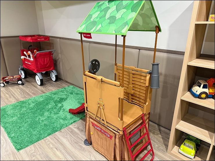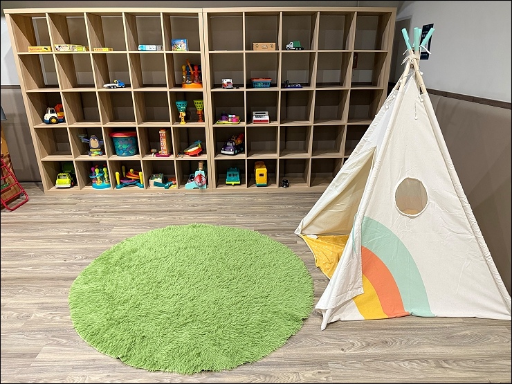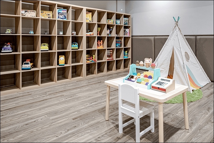 多功能親子空間在地下室,有賽車遊戲、任天堂SWITCH和簡單的小小孩遊樂園。