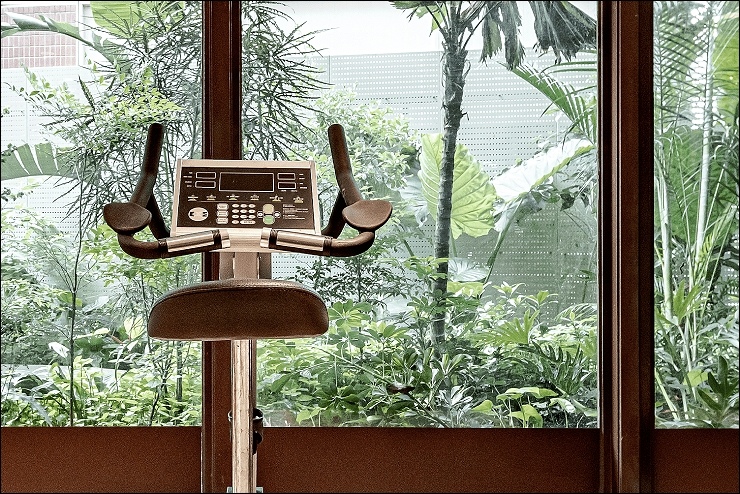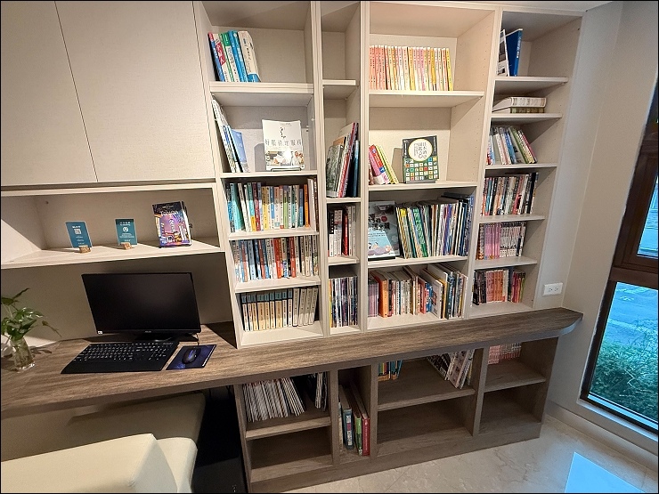 2樓有森林系健身房、閱覽區和餅乾吧,爸媽可以來運動健身,小朋友來翻翻書吃個零食喝個飲料。