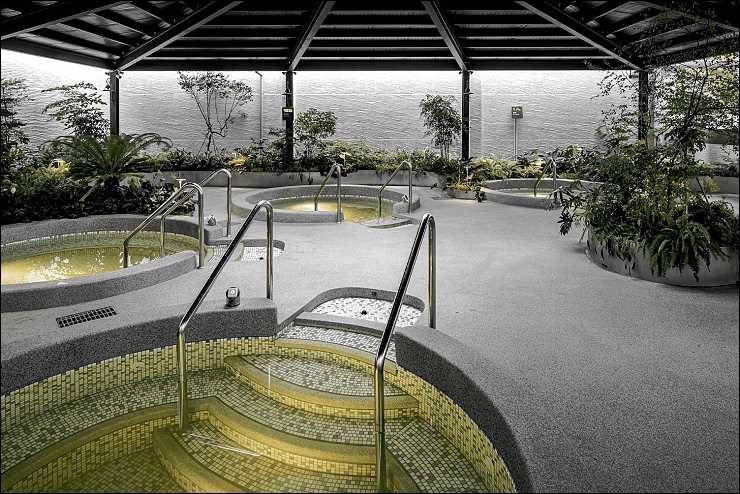 ▶ 泉境SPA設施免費使用,包含水療池、草本五行湯與烤箱,以及溫泉魚池體驗足浴SPA;另有健身房、閱覽區、遊戲區以及空中花園。
