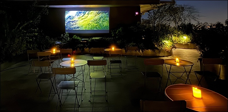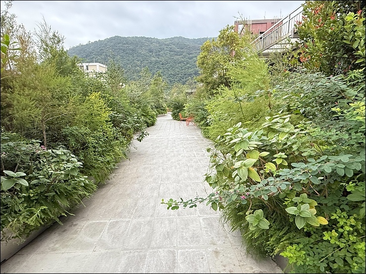 頂樓空境庭園和星空電影院,可以聽到鳥叫流水聲,看到山景的空中花園。