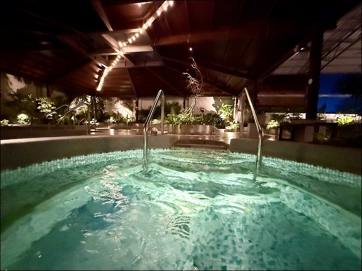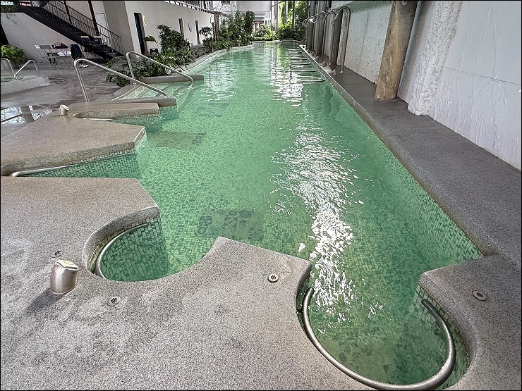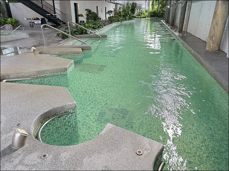 冠翔泉旅的泉境SPA提供全方位的泉療設施,擁有養生舒緩草本溫泉、水療池包含湧泉浮浴、超音波按摩與足部舒壓;兒童池、熱池、冷池、與烤箱,以及溫泉魚池體驗足浴SPA。中間長型的水療池溫度不會太高,很適合給小朋友玩水,最後頭的原湯精油五行池適合泡湯,最前面的溫泉魚池也很有特色。