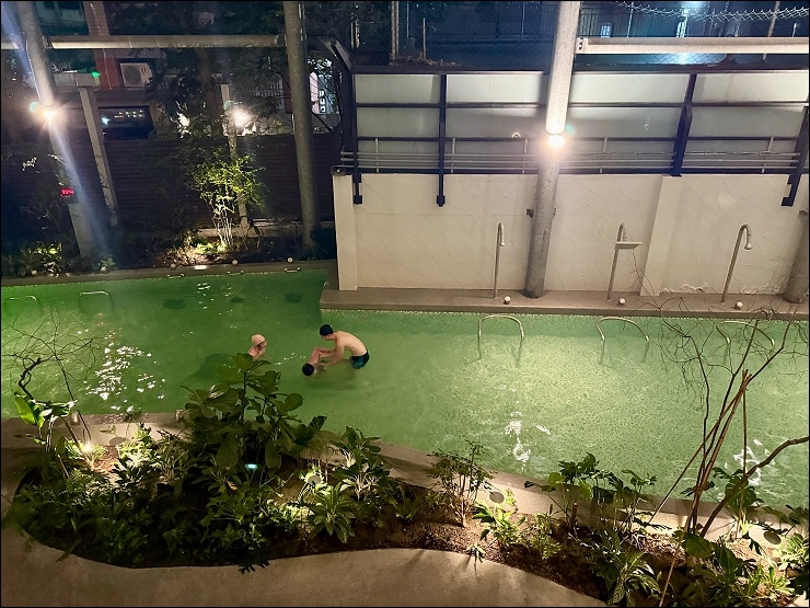 在礁溪市區的溫泉飯店裡面,冠翔泉旅真的很隱藏版,全面翻新後知道的人不多,泡起來超級舒服,我們周六入住當天晚上和隔天早上來泡湯玩水都差點包場。