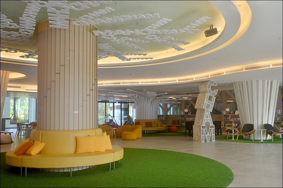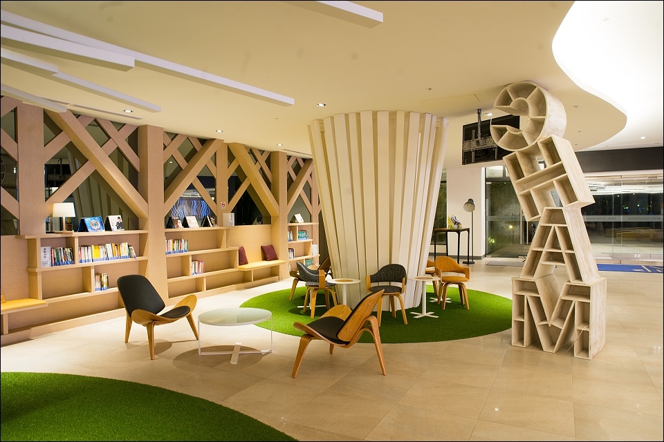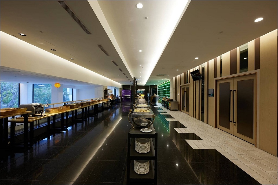 踏入大廳,映入眼簾的便是一面《湖光山稜》立體藝術創作,由國際知名設計大師蕭青陽老師,搭乘遊艇體驗曾文水庫湖光山色美景後,以曾文湖面光影設計之靈感為啟發,水波流線的LED燈束投射出虛擬又充滿現代感的視覺藝術,白天、夜晚、清晨時分或是日落,隨著時間流動展現不一樣的風情。