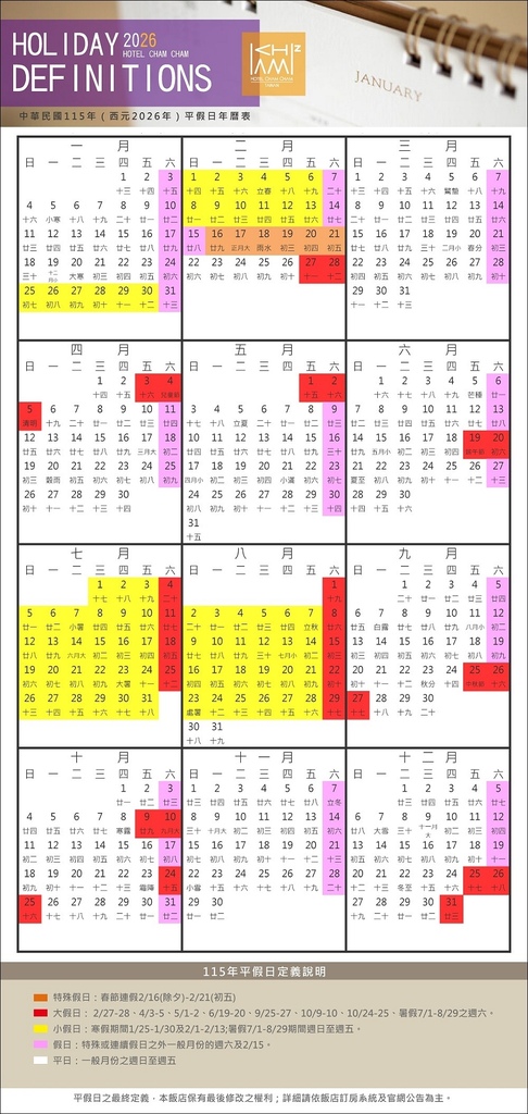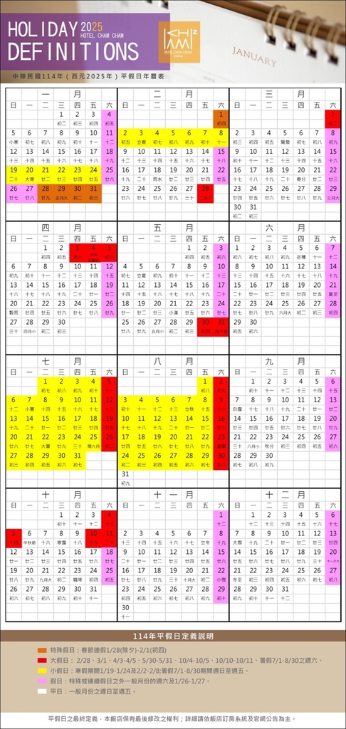 備註:請以飯店平假日定義為主